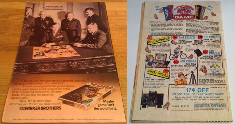 The advertisements, as pictured on the inside and outside back covers above, were also changed, as were all the other ads throughout the book.