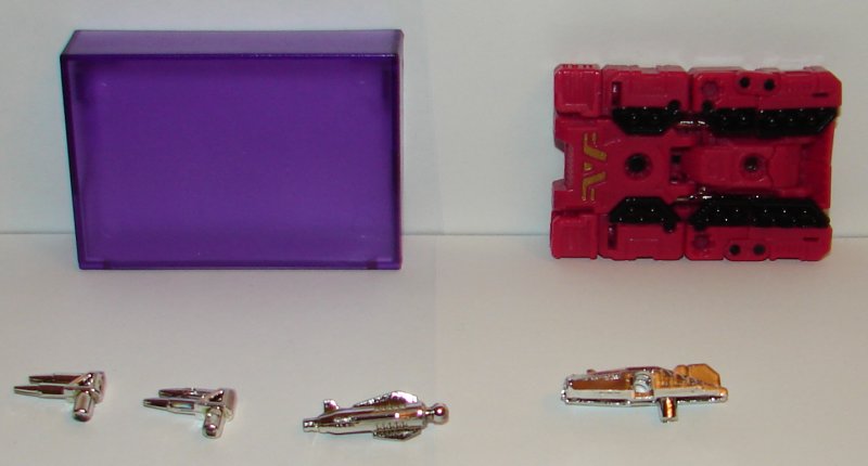 These aren’t terribly expensive, which is the only reason I picked them up, Frankly, I am disappointed. The G1 toys are far better. They actually look like cassettes. These have no cassette markings on them, making them just look like plastic rectangles with holes in them.