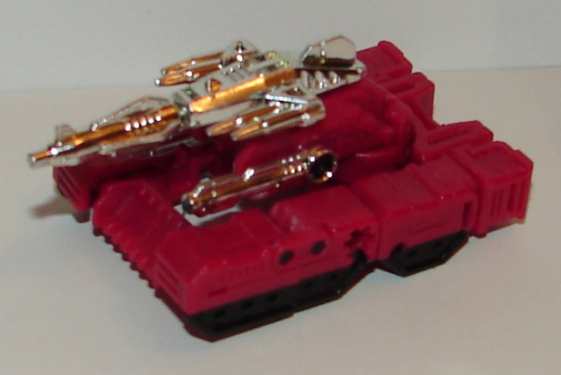 Slam Tank is pretty cool in tank mode. Kind of hollow, he’s got an open square inside the treads in front, but the weapons cover that pretty well.
