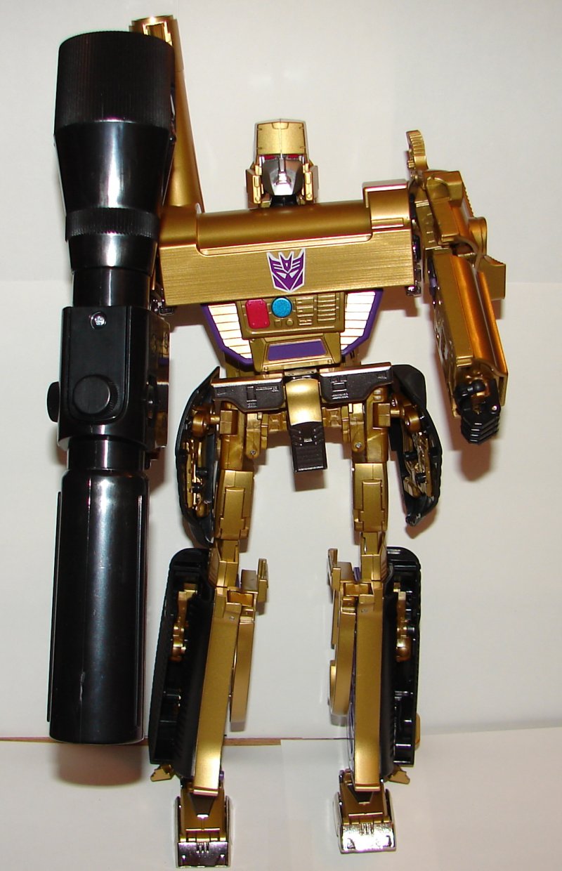 In lieu of the coin that most recent Masterpiece toys have received, the gold version of Megatron comes with a small die cast metal Reflector. It’s too small to actually be an accessory for Megatron, but this is such a crappy toy, that’s just par for the course.