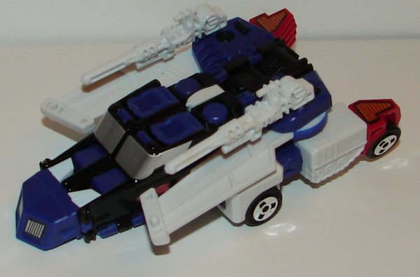This one came out a couple of years ago, I think, but I just picked it up. The World’s Smallest Transformers Solo Assault Group, AKA Sixshot, has been repainted into Ultimate Fire, AKA Great Shot. They did a great job repainting him. Sixshot is such an amazing feet of engineering, he’s one of my favorite G1 toys. One of the coolest things about Ultimate Fire is the raised sticker for his chest that simulates the mold change to Sixshot’s chest when they made Great Shot. Unfortunately, they did not make the other mold changes from Great Shot, most notably the new robot and animal head sculpts, but he still looks pretty great.