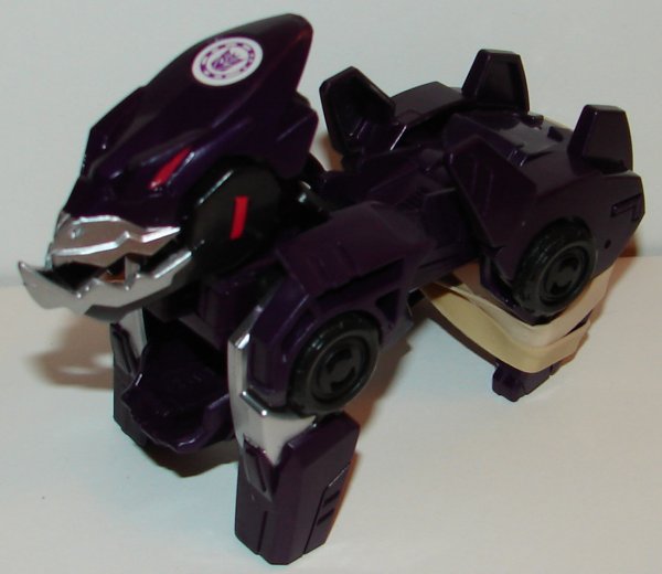 Underbite kind of sucks. You’ll notice that to put him in robot/animal mode, I had to put a rubber and around his legs. That’s because when I was taking the pictures I couldn’t get them to click in place and the spring loaded legs would put him back in vehicle mode. Today I was fiddling with him, and it started to work properly. Not a great design, but he’s kind of cool looking.