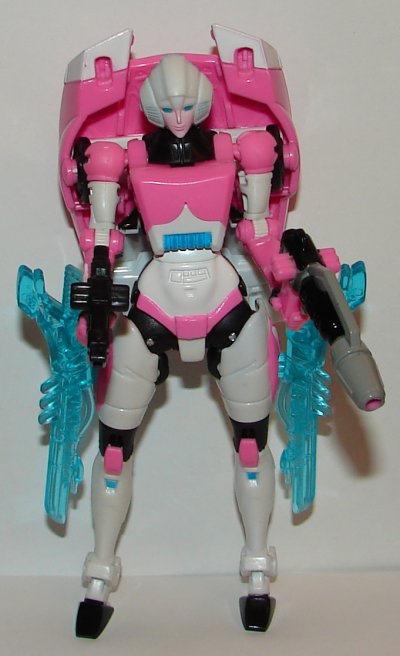 Vehicle Mode: Arcee looks amazing in car mode. She’s absolutely perfect, I wouldn’t change a thing. She looks great with her weapons attached, though I wish she had two of the same gun. I just prefer it more symmetrical.