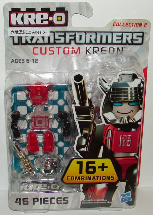 I have very little to say about these. I don’t like the chrome helmets. The extra helmets look on the package like the are anchored onto the extra body on the display, but they are not connected, they just sort of hang off the neck peg. The extra weapons are kind of cool, but I would much prefer to actually have Micro-Changers of core characters like Jazz and Cliffjumper. It makes no sense to me that the most important Transformers characters have Custom Kreons but not Micro-Changers. I would have gladly paid a couple bucks more for each of these if they had just a few more parts to make them Micro-Changers.