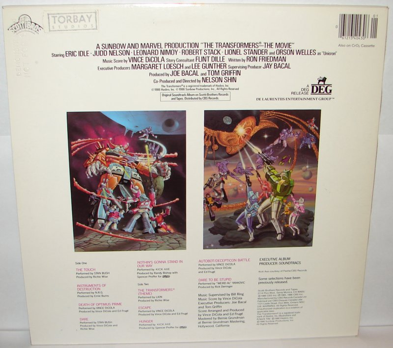 Transformers Artifact of the Week: Transformers: The Movie Soundtrack Record (Canadian Promo Copy)