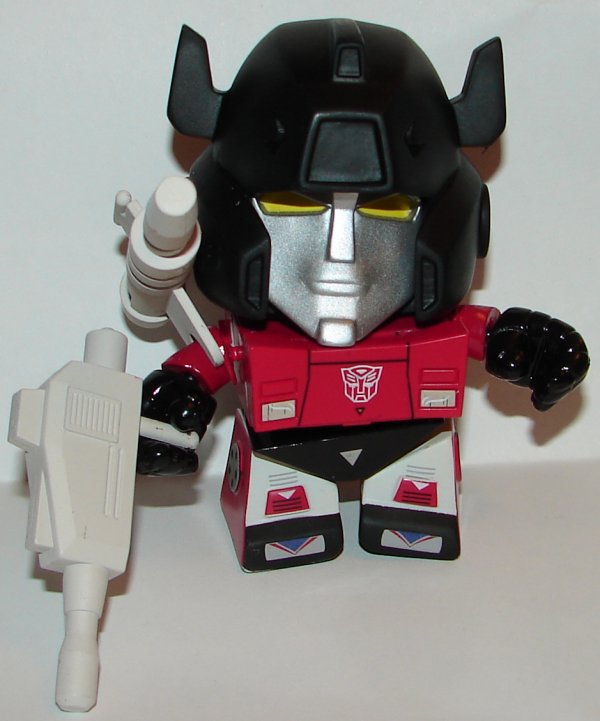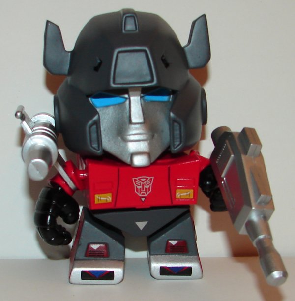 To make the whole chase mess worse, Hot Topic got their own boxes of Series 2 with different figures. Hot Topic’s boxes contained a new Grimlock with additional snap on parts from the Series 1 version and a new figure, Snarl. Hot Topic omitted Mirage and Sideswipe completely. They also changed the ratio. I think, though I’m not 100% sure, the talking Optimus Prime chase was a regular non chase release in the Hot Topic boxes. Prowl was also omitted from the case, replaced with a repainted Prowl as Bluestreak, who was a chase figure. This all makes for a convoluted mess and really hard to tell which figures are truly rare. I was lucky (at least I thought I was) to pull a Bluestreak from a blind box, the only blind box I bought. Unfortunately he came with Snarl’s Tech Spec card. I contacted Loyal Subjects and after being strung along with promises of a replacement for five months, I’m shit out of luck. Apparently there weren’t enough of us who didn’t get the right card to justify reprinting them. Frankly, one person should have been enough. This is a lousy way of doing business.