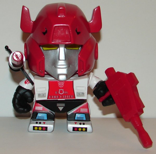 In December Game Stop stores got a series of six more figures. These, mercifully, were not blind buys, they were packed in window boxes. This is a very odd mix of repainted figures with truly bizarre names. Optimus Prime, called Nighttime Edition is painted more like the G1 toy. Prowl has had his insignias changed to the California Highway Patrol. Sideswipe was repainted into Red Alert, the only new character in the series. Slag has been given a red head and other parts to look more like the “Red Slag” G1 variant. Talk about one that’s out of left field. A Sideswipe repaint, also called Nighttime Edition is different from the regular version, though the name doesn’t seem to have any particular meaning. Shrapnel is supposed to be the Animated Series Edition, not that I know what that means. It almost feels like Game Stop wanted some exclusives and they just made some paint changes to which ever figures were being manufactured at the time with no rhyme of reason.