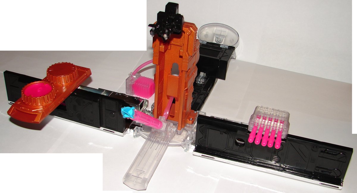 I did not bother transforming the cassettes. I was nervous transforming the regular ones, but it didn’t seem worth the risk with all the small clear plastic bits. The set still has all the accessories of the original TRU version. If Soundwave were clear and gray, he might not look bad. He has fewer paint apps than the regular version, which just adds to how overpriced it is.