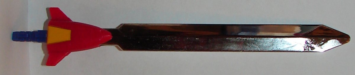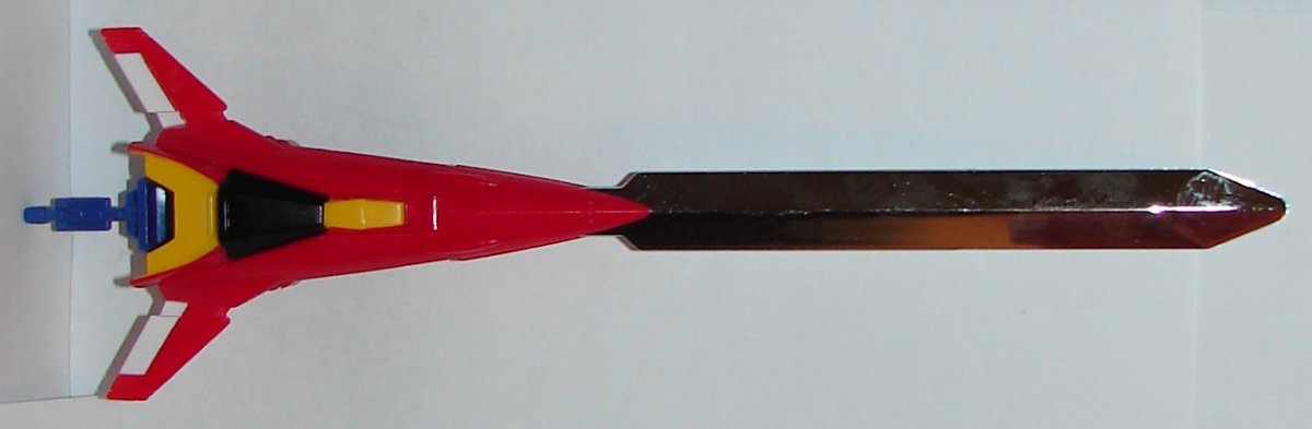 The nose of Saber (Small Jet) becomes the hilt of the larger sword. Unlike the small hilt, only the long blade can fit into the large hilt.