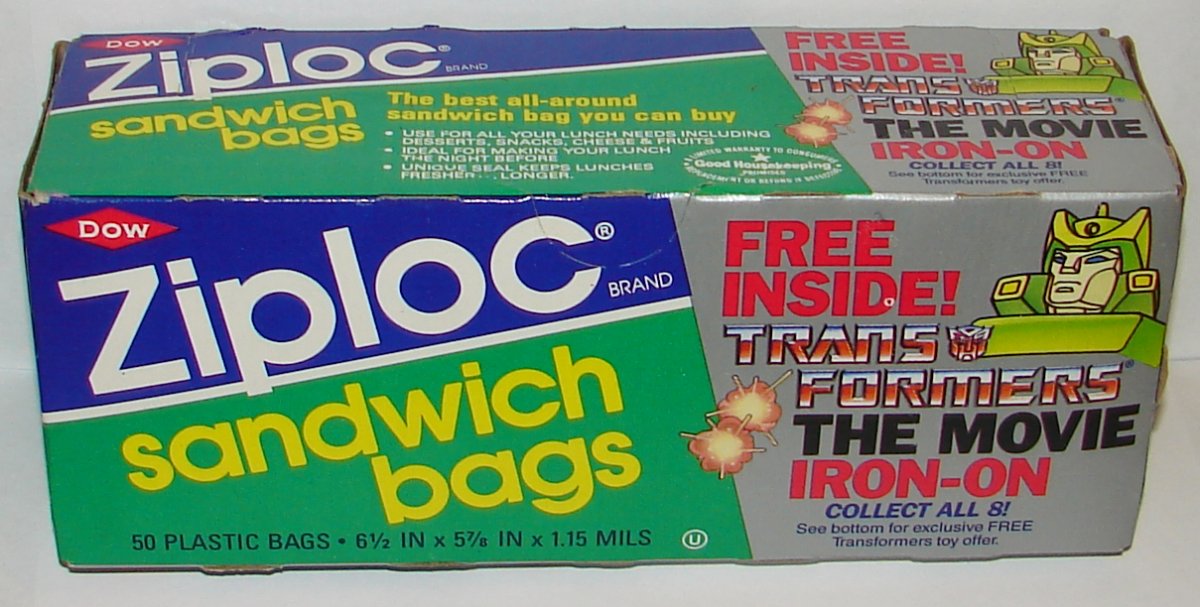 Transformers Artifact of the Week: 1986 Transformers The Movie Ziploc Promotion Sandwich Bags Sealed Box