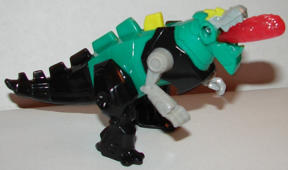 Grimlock has a very cool feature. He has a switch on the bottom. In one position his missile lights up, in the other it fires the missile. He’s one of the better ones in the set.