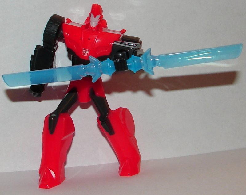 Sideswipe looks really great, nice molding. His hand spins like Optimus Prime’s, but he has a weapon that doesn’t make it look like he needs Viagra.