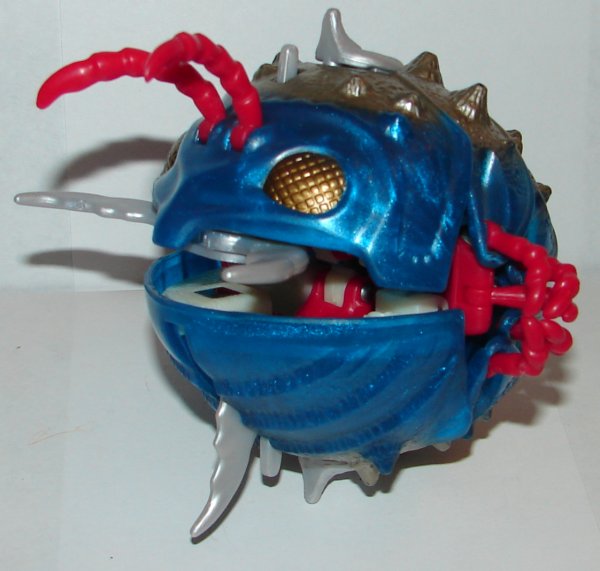 He’s a roly-poly bug, which does roll up into a ball. Kind of weird for a Transformer, and I’d argue poor execution, but if they’re making the bug, he ought to be able to roll up into a ball.