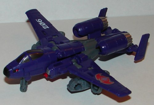 Viper looks great. He’s painted up to look like a Cobra Rattler, and his new face sculpt is meant to look like Rattler pilot Wild Weasel’s mask. His symbols are from the Cobra Air Guard with Decepticon logos superimposed on it. Kind of makes it look like it has wings. This is pretty cool, and frankly, I’m glad they did it before Fun Publications got the idea to do another multi club exclusive. I hate it when they do that, and there are three of them coming out this year (Serpent-OR from the Subscription Service and the two club exclusive figure/toy sets).