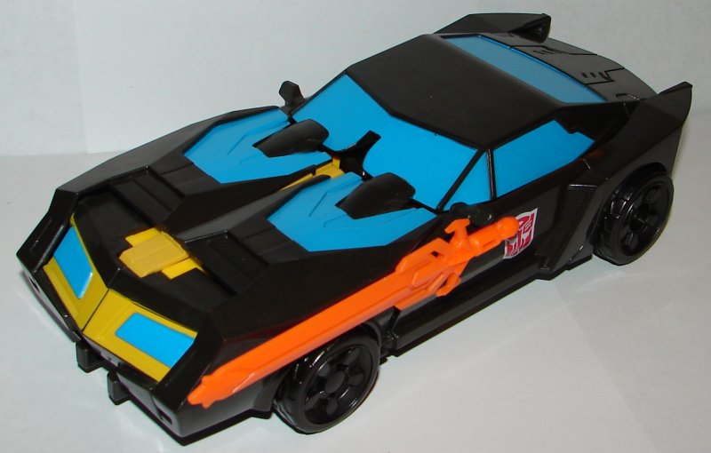 In vehicle mode, Bumblebee’s hood has been remolded and a port has been added on his fender for his sword, which is also a new addition. In robot mode his lower legs and chest has been remolded. The new paint job is fantastic. He’s got lots of paint apps. Bumblebee really looks nice.