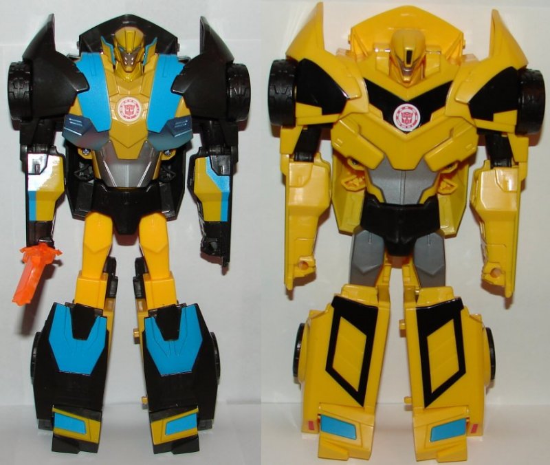 I was really surprised when I got these to find that they were not only repainted, but remolded as well. You can read my original reviews of Three Step Changers Bumblebee and Optimus Prime.
