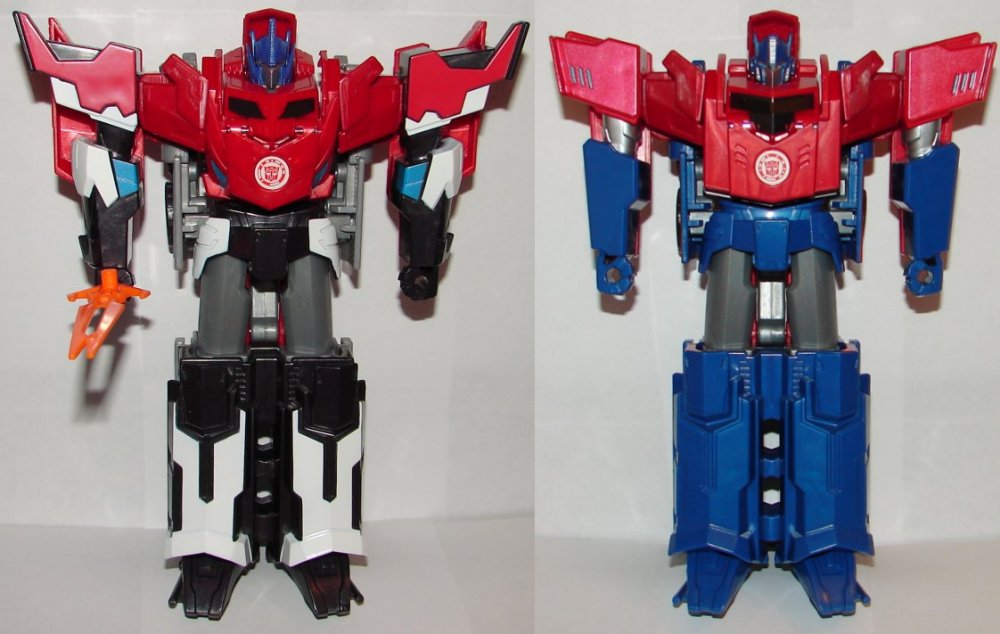 They did an amazing job on Optimus Prime. In vehicle mode the cab has been extensively remolded. Also the top rear of the trailer. A port has been added on the side of the trailer for his weapon, which is also new. In robot mode his chest, shoulders, arms, and head have all been remolded. He has a pretty great paint job too.