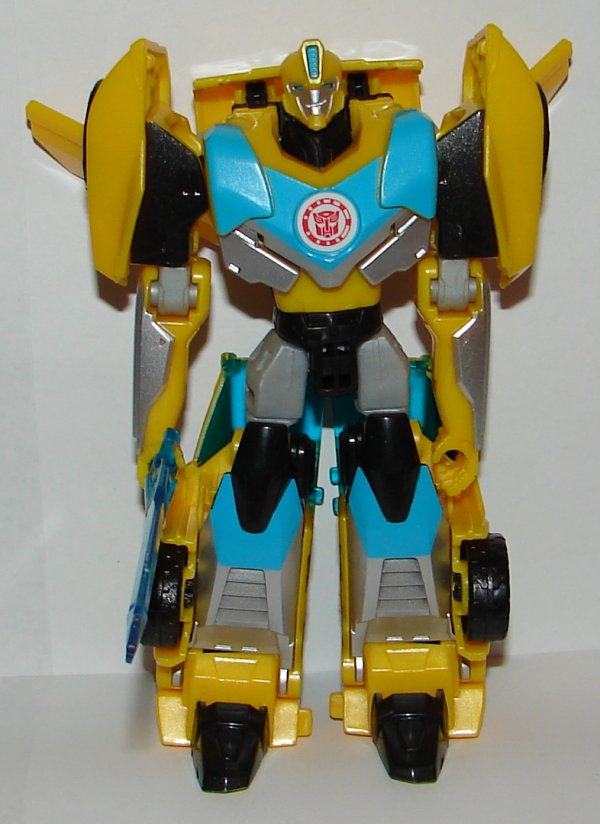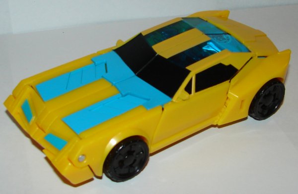 I really like Bumblebee’s new paint job in robot mode. The silver and blue looks really nice. In vehicle mode, I don’t understand the logic of the translucent blue rear windows and black front and side windows. I think it would have looked better if he had some silver on him in vehicle mode. Nice repaint though.