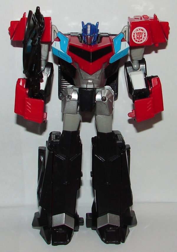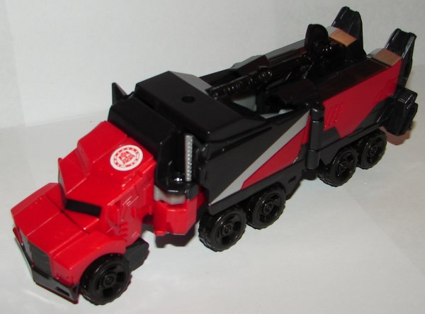 Optimus Prime looks nice, but he needed some more paint apps on his legs. Either silver of white would have looked good and then been visible on top of the trailer. Other than that, he looks great.