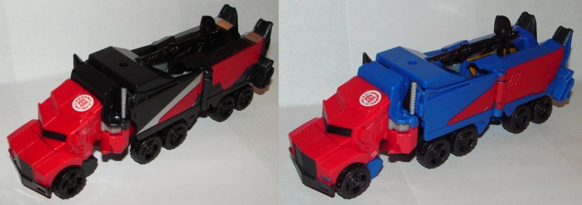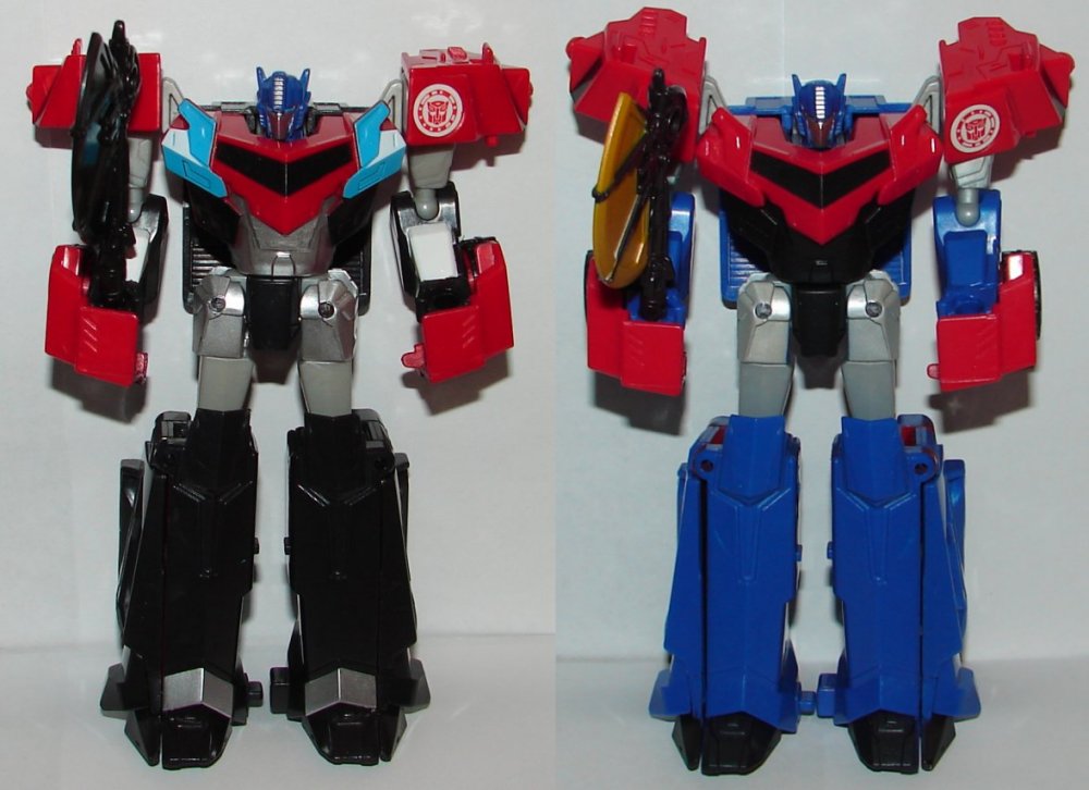 All three are repaints. Please read my original reviews of Bumblebee, Optimus Prime, and Sideswipe.