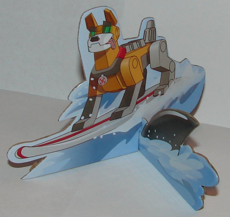 Cody and Rescue are just cardboard stand ups. There is a plastic life preserver that can be connected to a slot on Cody’s hand.