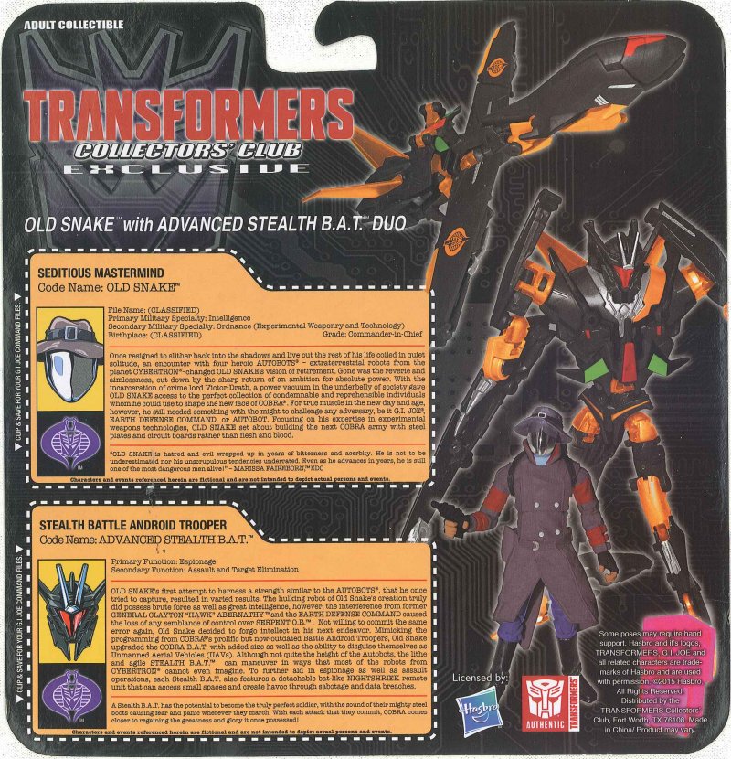 Transformers Collectors Club GI Joe Crossover Marissa Faireborn with Afterbreaker and Old Snake with B.A.T.s