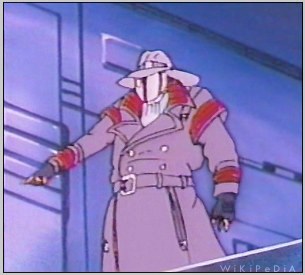 First off, his coat is supposed to be a gray-blue or slate gray. It is not supposed to be light brown. Now, I could forgive that the trench coat style does not match exactly the animation if it were at least the right fucking color. Points for painting the silver buttons on, but points away because that means someone actually watched the episode and thought this toy represented what they were seeing. At least if I thought that someone did it from memory, it would explain how it could be so bad. They put the red stripes on his arms and collar, and his gloves with no fingers. Those and the buttons are about all that is right.