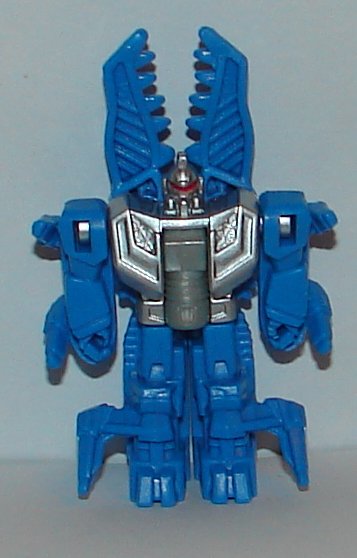 So, here s where this year’s toys start to get stupid. First off, We only got a Legend instead of a Deluxe as the Attendee toy. Talk about cheap. They keep raising the price and reducing what people get for it. Typical. Worse yet, Zaptrap isn’t even a Transformer. He is supposed to be a Diaclone toy. You know, I like Transformers repainted in Diaclone colors as Transformers. I do not like Transformers made into Diaclone toys. This is crap. No Autobot or Decepticon symbol and a meaningless Tech Spec. This is just stupid. It fails completely as a Transformer because it isn’t one. If this was Diacon, then this would be fine, but it’s not. This is unfortunately only the first of a number of horrible toys that aren’t even Transformers. It’s kind of unfortunate, because it’s not a bad looking. Just too bad it’s not a Transformer.