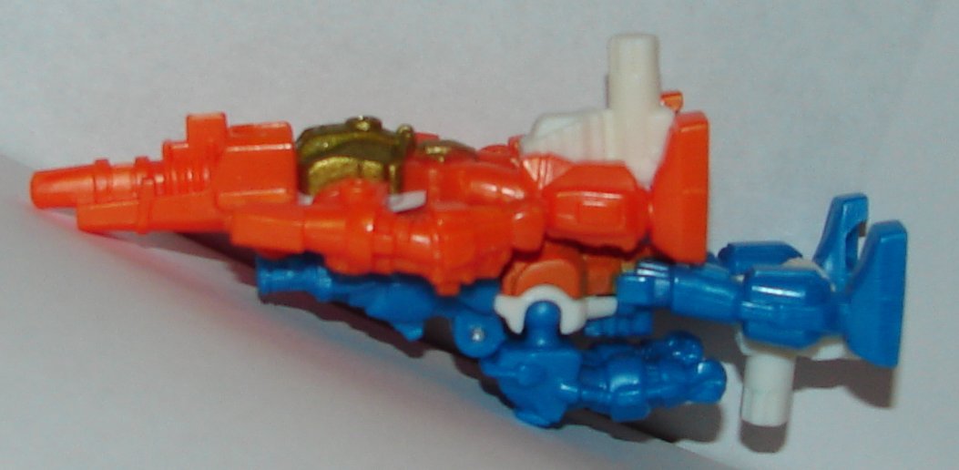 So, like Zaptrap, Burn Out is not a Transformer. He is a Diaclone toy. How they managed to bungle this I don’t know. All they had to do was stick purple Autobot logos on him and call him Shattered Glass Skids. It was that easy. It would have been a great toy. As is, he’s crap. Also of note, mine had two right feet. My guess is a lot of people have this but didn’t notice. I got the foot replaced. After spending so much money on crap, I at least wanted the right parts to the crap. As I previously mentioned one of Scoop’s Targetmasters is meant to serve as Burn Out’s pilot. His name is Dia. The other one’s name is Cline. Dia-Cline, get it? The lack of creativity is astounding.