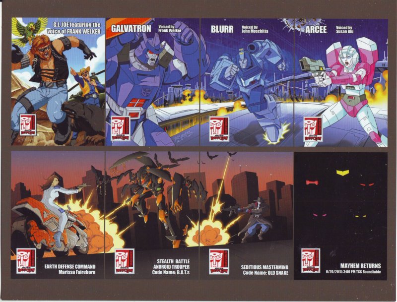Uncut sheets are pictured. I didn’t bother scan the individual cards. The last card is the exclusive version of the Mayhem Returns card that was given out at a panel.
