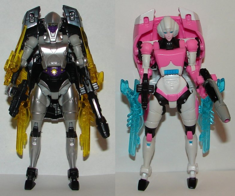 Robot Mode: In addition to Arcee’s swords and guns, Nightbird comes with a pair of sais. Her chest and waist has been remolded and she has a new head that looks amazing.