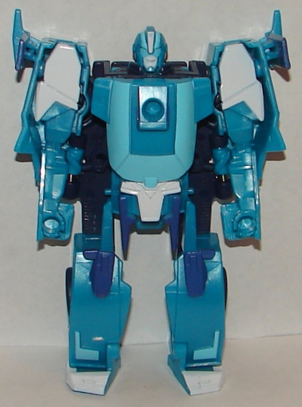 I really like Blurr’s car mode and he doesn’t look bad in robot mode. I like his head sculpt. Like so many One Step Changers, multiple steps are required to transform him. His feet have to be manually transformed separate from his one step.