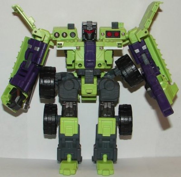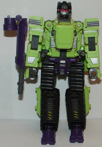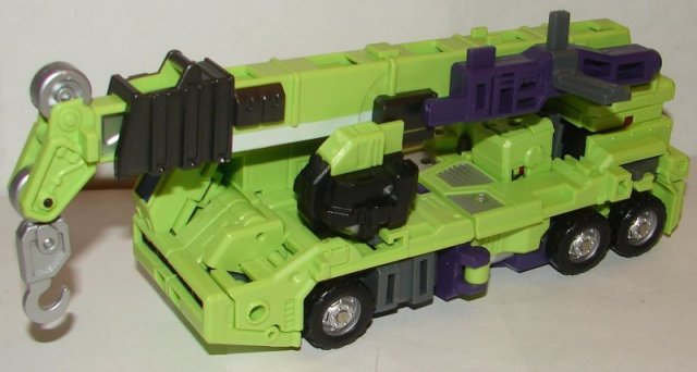 Hook has Devastator’s head incorporated into him. They painted the back of his head green and made it look like the control center for the crane, so it’s not too bad. He looks pretty good in both modes. I would mind that his crane arm is removable if not for what he can do with in when combined as Devastator. More on that later. I’m not crazy about the green helmet, but other than that his robot mode looks great.