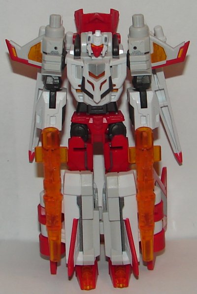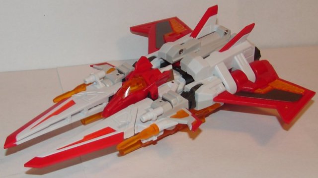 Strafe looks awesome. His jet mode is perfect. I love the translucent orange guns. His robot mode is equally perfect. I really like his head sculpt.