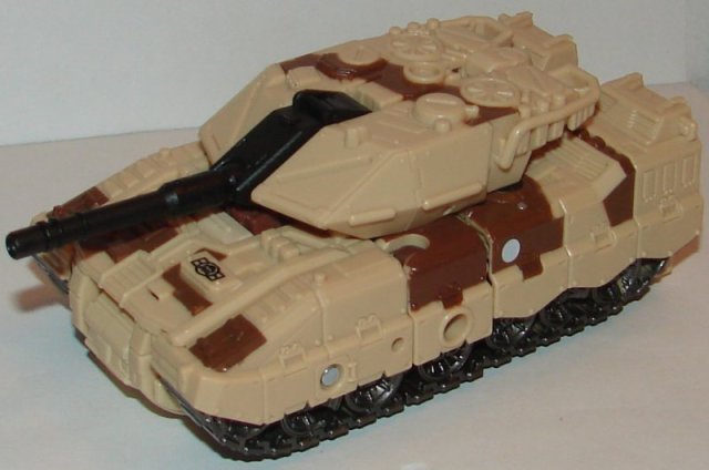Dangar has an added weapon compared to other releases of this mold. They have included the weapon from Unite Warriors Scavenger. He’s been repainted in tan with brown camouflage.