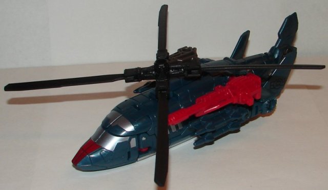 I love the paint apps on Hepter in robot mode. The red and orange look great on the green. It is a shame that this is only the second, and likely last, use of the four blades on this mold. I like it way more than the dual bladed rotors. He comes with Unite Warriors Mixmaster’s gun.