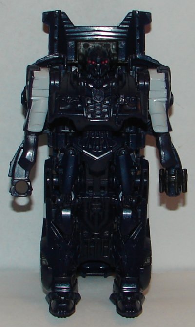 Barricade looks okay in car mode. His feet are sticking out the back of the vehicle mode, but we’ve seen worse one step toys. His robot mode needed more paint apps.