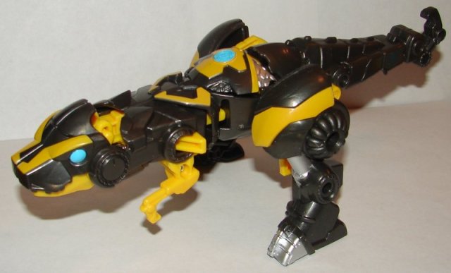 This is the better of the two Dinobots. (It still really annoys me that we never got Rescan Series Dinobots of the rest of the team.) That doesn’t mean it’s a great toy, but something about Optimus Prime wish a T-Rex head hand is pretty cool…yes. It’s not a great toy by any means, but I really like the color scheme. You can read my review of the original version here.