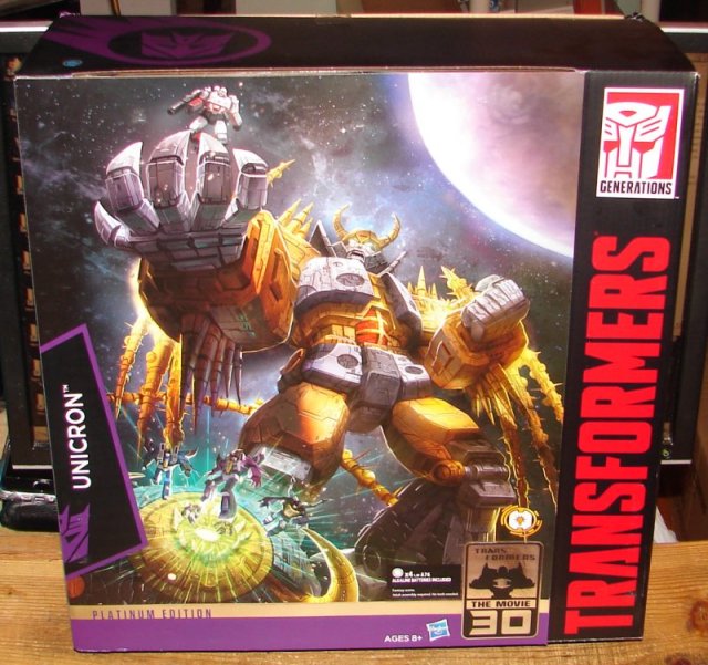 I have never done a full review of Unicron. This will be a little different than most of my reviews. This is now the sixth version of this mold that I have. He’s a pain to transform, and I really don’t ever want to Transform him again, so I am going to use Hasbro’s official photos for the most recent Platinum Edition Unicron, which are not actually of the most recent Platinum Edition Unicron. Yeah, Hasbro didn’t even bother to take photos of the new version.