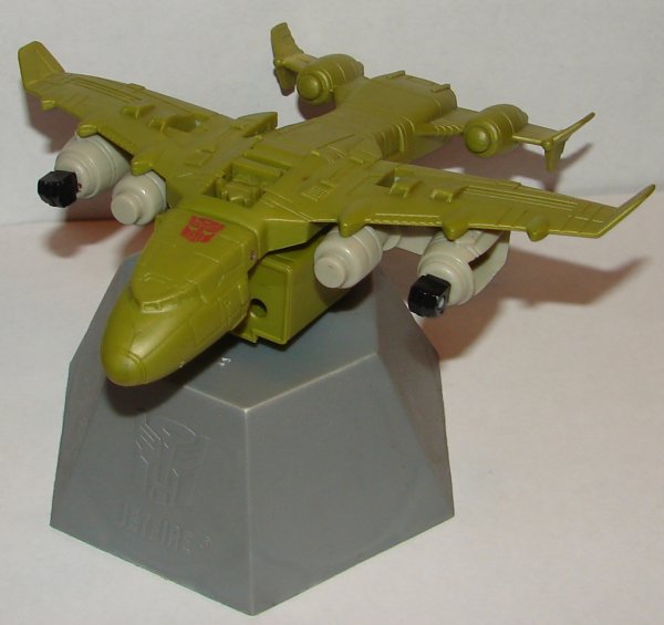 Jetfire is not a great toy. He is pretty flimsy, especially in vehicle mode. I managed to get his arms to stay in the up position under his wings for the picture, but as soon as I picked him up, they fell back down. His legs to not clip in under the jet, so they just sort of hang there. That aside, he doesn’t look terrible in jet mode. He is better in much robot mode. His jet nose pegs into his waist so he stays together in robot mode. Not sure why they thought of it for his robot mode, but not in vehicle mode.
