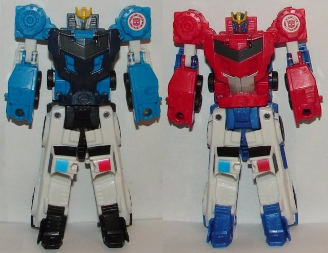 This is definitely one of the better sets. I love the look of both vehicle modes, and the robot modes are, what you would expect. Not great, but the face sculpts are pretty good. I kind of wish they would do a combiner of Blurr and Sideswipe. Wildbreak with a new head could easily be repainted into Blurr and paired with the existing Sideswipe.