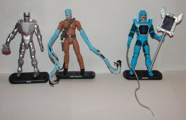 Rom, Dire Wraith, and Leoric. Why exactly did Rom rate having a villain in this set? The Rom figure is kind of cool, but I know nothing about Rom so it’s not exactly a big deal for me. The Dire Wraith figure has a holster but does not come with a gun to put in it. Leoric is, I’m guessing, a repurposed GI Joe body. His hand is not the right shape or size to hold his staff. He can barely hold his whip. Even more ridiculously, the original toys all had holograms on their chests and staffs. These don’t have holograms, just plain stickers.