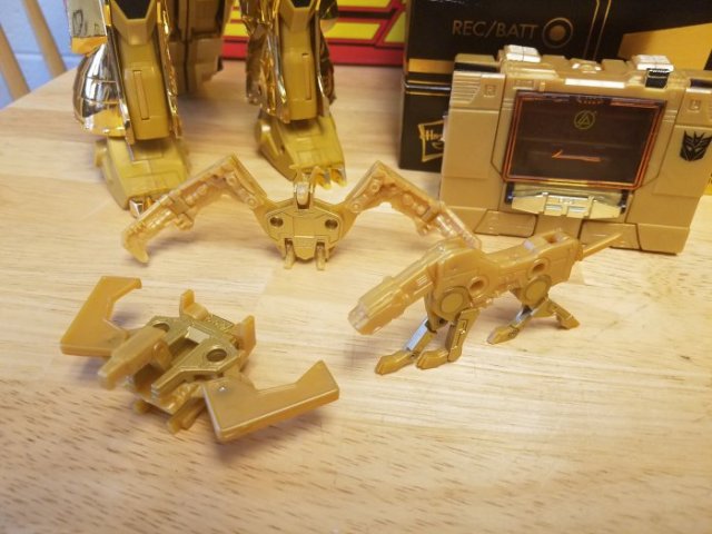 The pamphlet is cute, and I like that all the accessories are Chrome. I think I would have liked it if more of Soundwave was gold Chrome. I’m disappointed. Furthering my disappointment is that this doesn’t appear to come with a sticker sheet. Some gold chrome stickers, like the Predacons had, would have been a great option. These guys look just naked without their details.
