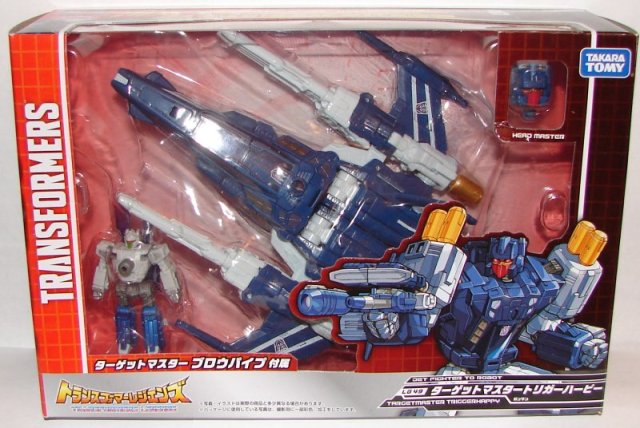 Legends Deluxe Triggerhappy is repainted and remolded from Transformers: Generations Deluxe Triggerhappy. Headmaster Triggerhappy is repainted from Titan Master Blowpipe. He comes with a new mold Targetmaster. Read my review of the USA Triggerhappy & Blowpipe here.