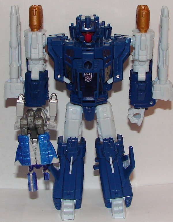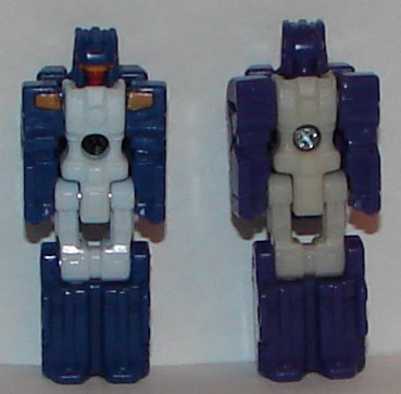 Triggerhappy’s only remolding is the port to mount the Targetmaster on top of his vehicle mode. He’s bluer than the USA version. They also used white plastic rather than the gray the USA version uses. This is an enormous improvement.