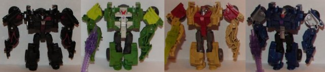 Unlike the Toys R Us Mission to Cybertron 2-Packs, Hasbro didn’t even bother to repaint Megatron and Optimus Prime. They are identical to the single packed releases. Bumblebee is nearly identical. Details below. It really sucks that Hasbro couldn’t even be bothered to change a few paint apps to make these new toys. You can read my reviews of the original versions of Megatron, Bumblebee, Hot Rod, and Optimus Prime. As they are identical, I am not going to bother post pics here of Optimus Prime and Megatron. Additionally they dug up the Transformers Prime Legion Breakdown and Soundwave molds to be Berserker and Ravenspar. Read my reviews of Breakdown, Breakdown with Apex Armor, Fallback, and Soundwave.