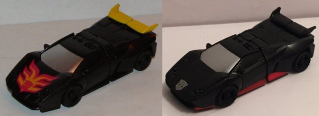 I really like the repainted Hot Rod. He has his G1 flames on his hood, which makes me a little annoyed they didn’t just paint him in G1 colors. Still really like the paint job though.