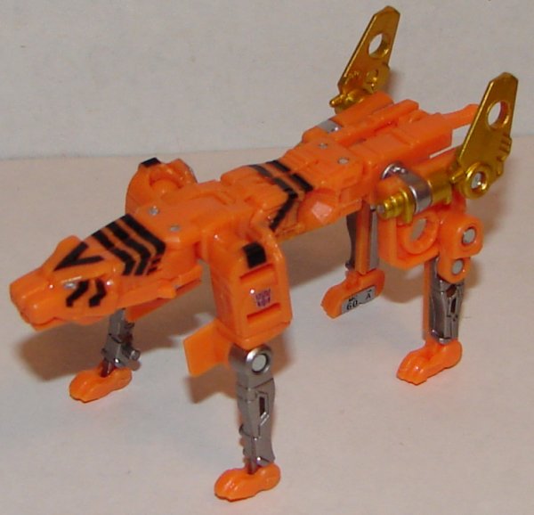 Stripes paintjob looks great. They remolded Ravage to have Steeljaw’s weapons.