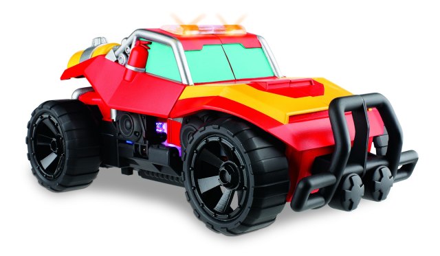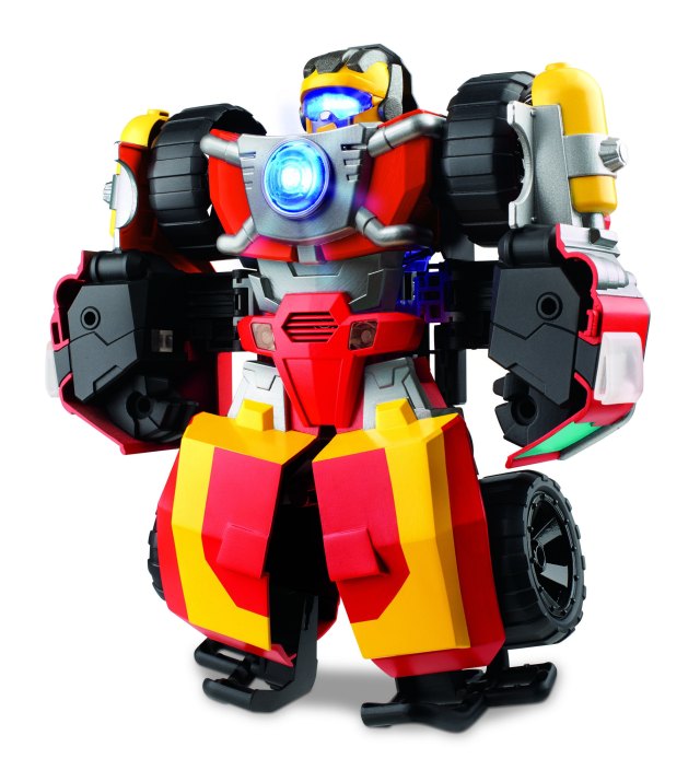 Some new Rescue Bots toys were announced. I didn’t bother with most of the photos. There are two large figures, Knight Watch Optimus Prime and Rescue Guard Bumblebee. Both comes with two Mini-Cons. There are some new Flip Racers with pull back and release motors and small playsets. There were a couple more Flip Racers 3-Packs. Nothing particularly exciting, but there was one interesting one pictured below. There is a new Megabots toy, Hot Shot.