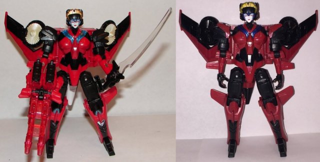 Windblade has slightly different paint apps on her face, but the sculpt is unchanged. I do prefer the Japanese version. In robot mode she has additional paint apps as well.